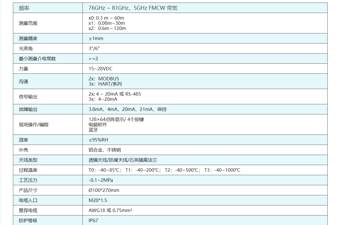 (5) 波束角可達3°,能量更集中,有效避免假回波干擾;