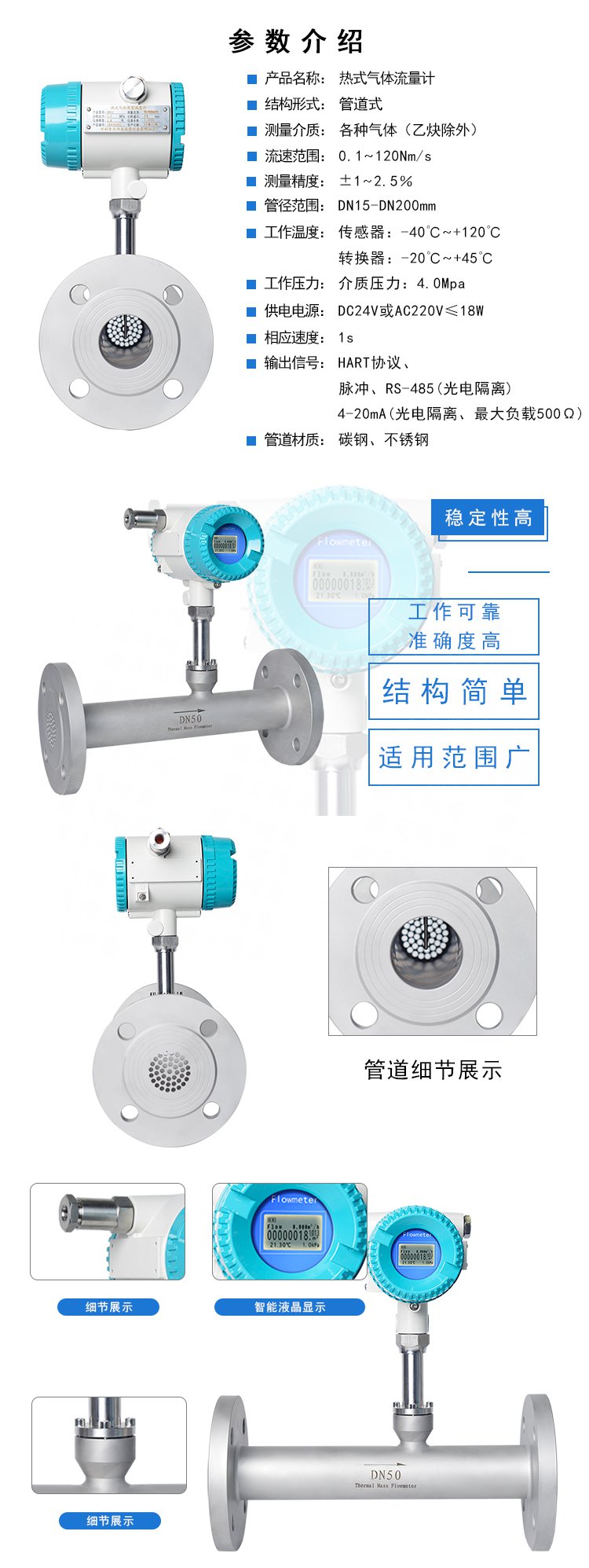 法蘭熱式氣體質(zhì)量流量計技術(shù)參數(shù)