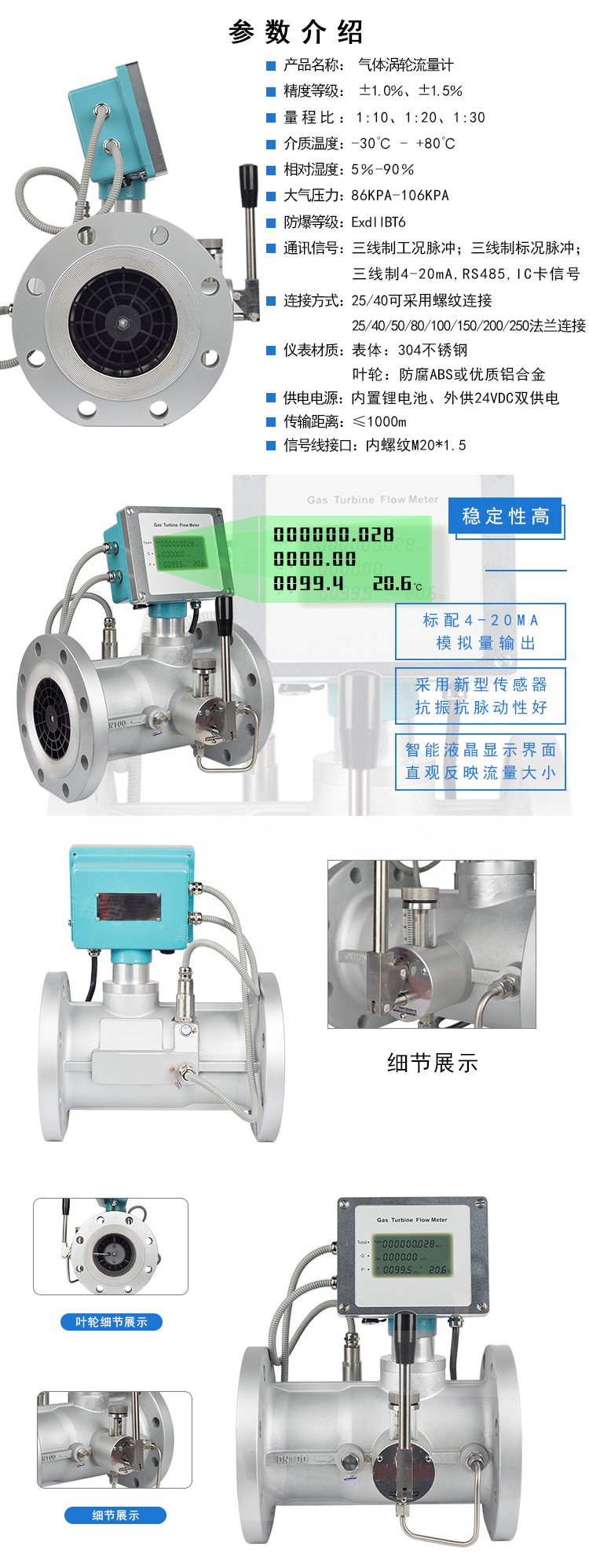 QT-LWGQ--CQ氣體渦輪流量計(jì)為了使用方便,電池供電的就地顯示型氣體渦輪流量計(jì)采用微功耗高新技術(shù),